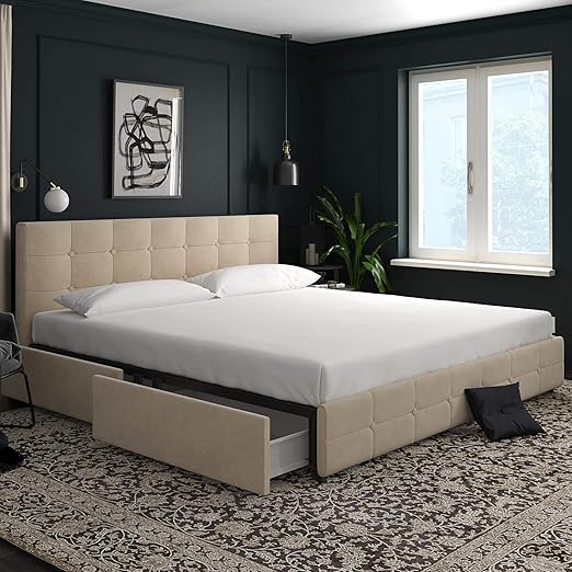 Amazon Com Dhp Rose Velvet Tufted Upholstered Platform Bed With Storage Ivory Velvet King Furniture Decor